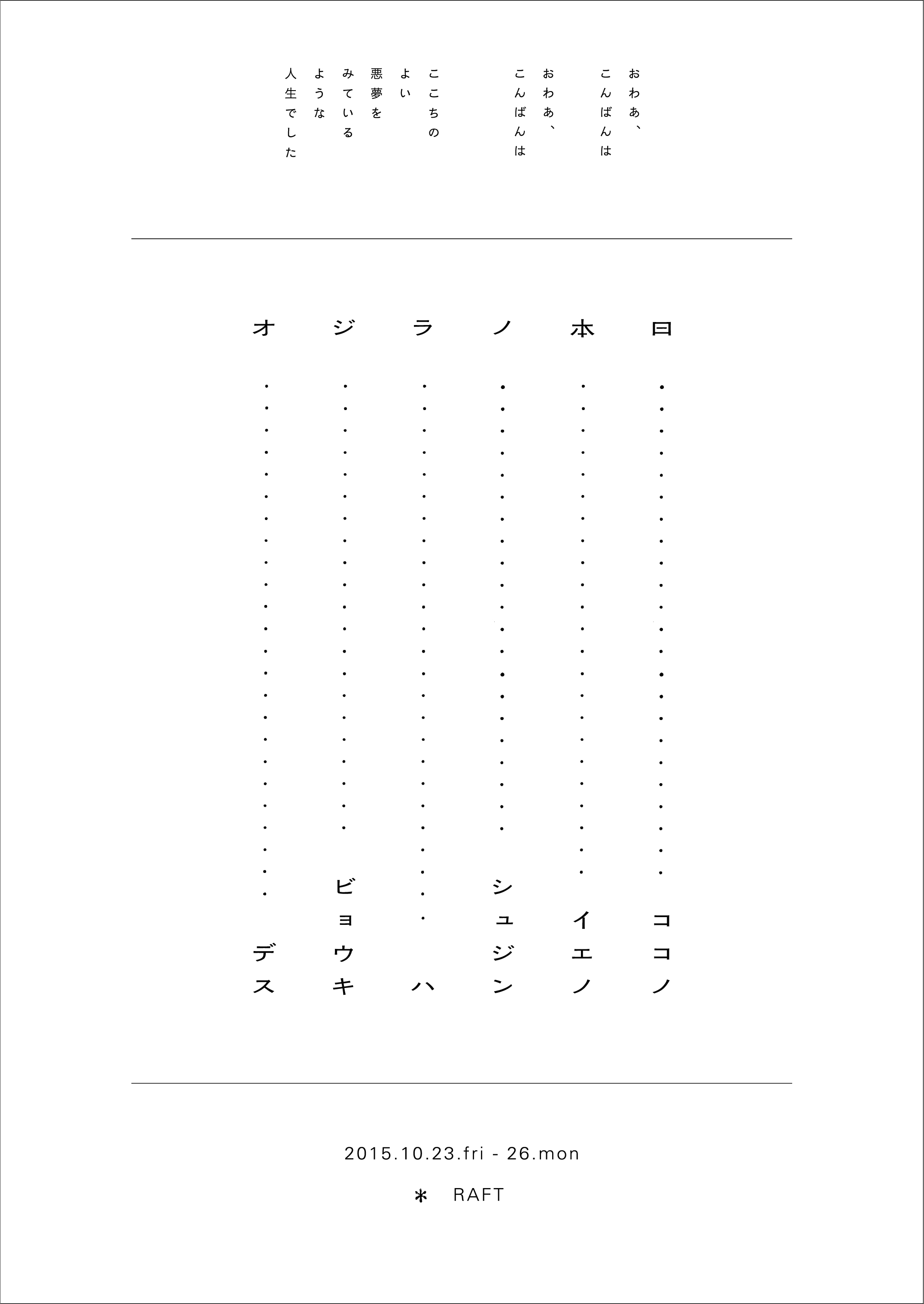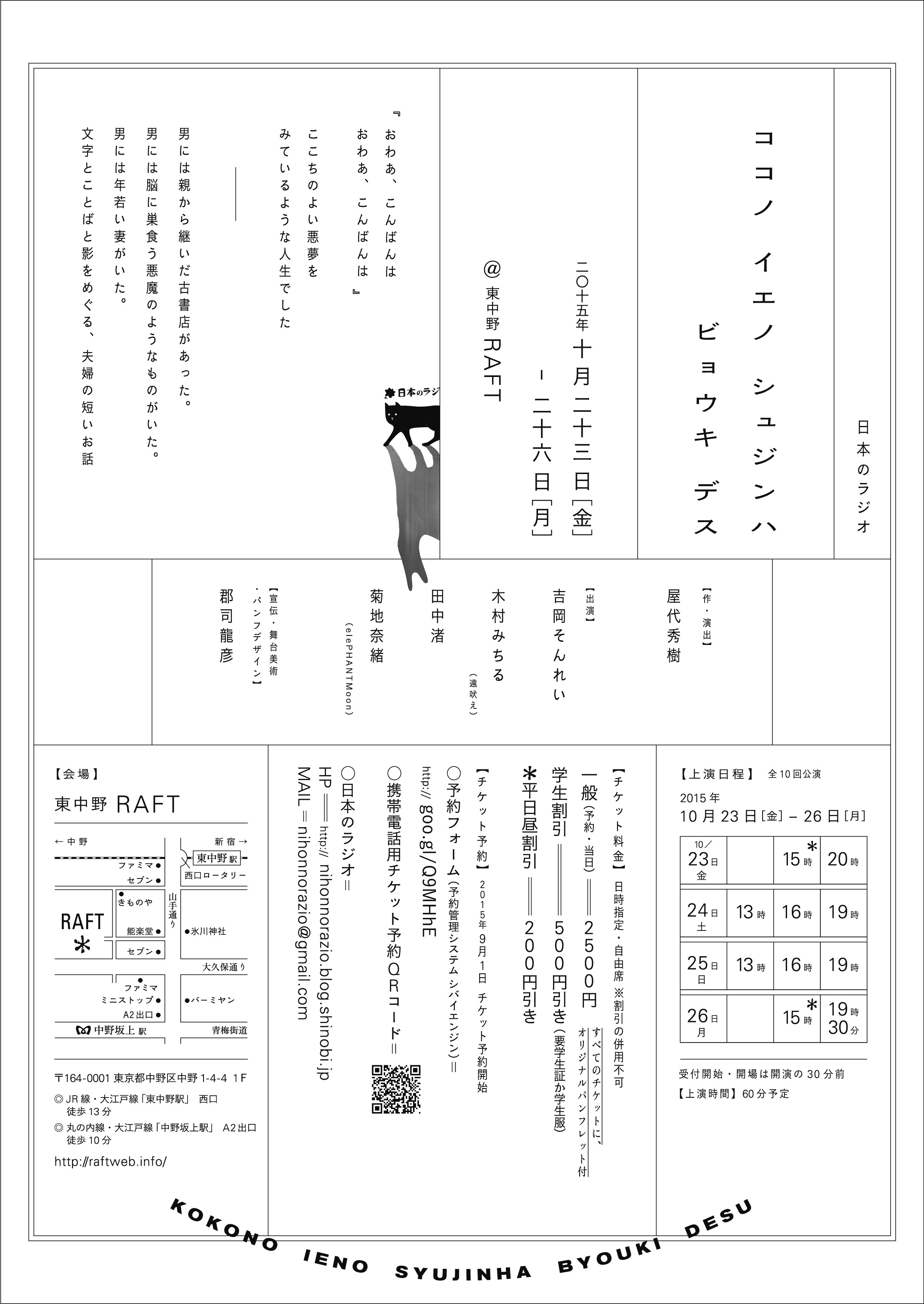 ただワークショップに遊びにきたいだけという方も応募可ですが、誰も集まらないと代表のヤシロが全部一人芝居をやるはめになるので何卒よろしくお願いいたします。